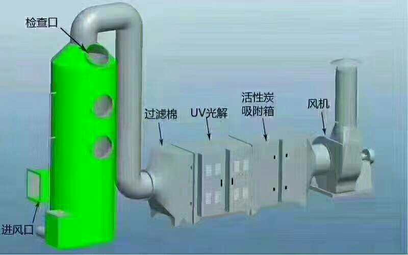 吸收液從塔頂部的噴淋系統噴淋到填料上,并沿填料表面流下。廢氣從塔底送入,與液體逆流接觸,通過填料層氣液兩相密切接觸進行傳質。填料吸收塔屬于連續接觸式氣液傳質設備,兩相組成沿塔高連續變化,在正常操作狀態下,氣相為連續相,液相為分散相。