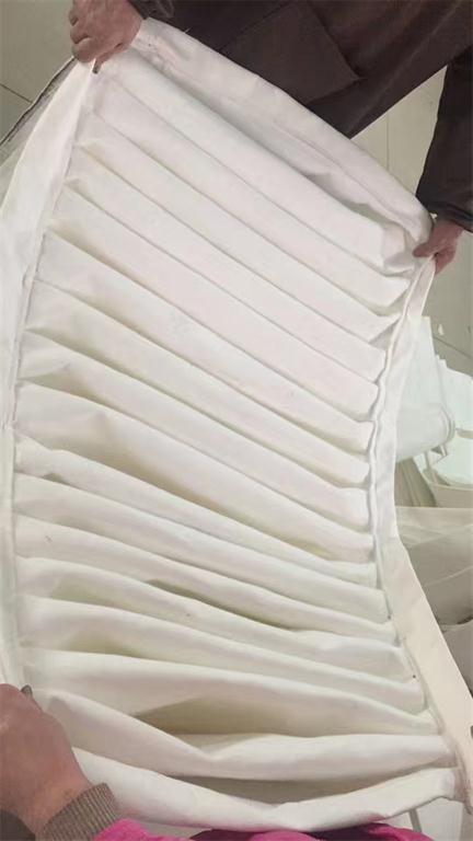 c 除塵器濾袋應合理剪裁,盡量減少拼縫。拼接處,重疊搭接寬度不得小于10mm。每邊縫線須二道。