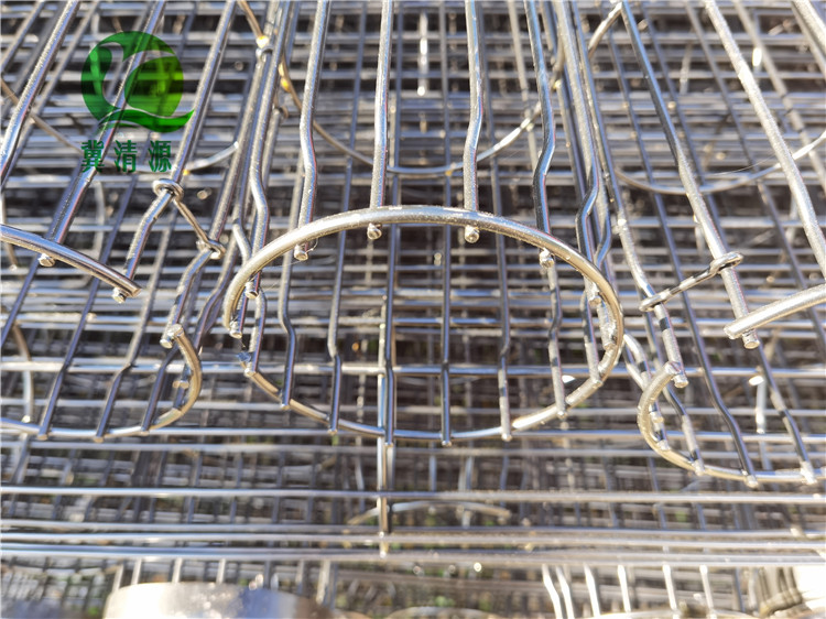 籠骨采用圓型結構,袋籠的縱筋和反撐環分布均勻,并有足夠的強度和剛度,防止損壞和變形(縱筋直徑≥φ4,加強反撐環φ5、間距200,),籠骨長度充分考慮到濾袋的熱收縮性,頂部加裝“η”形冷沖壓短管,用于保正袋籠的垂直及保護濾袋口在噴吹時的安全。