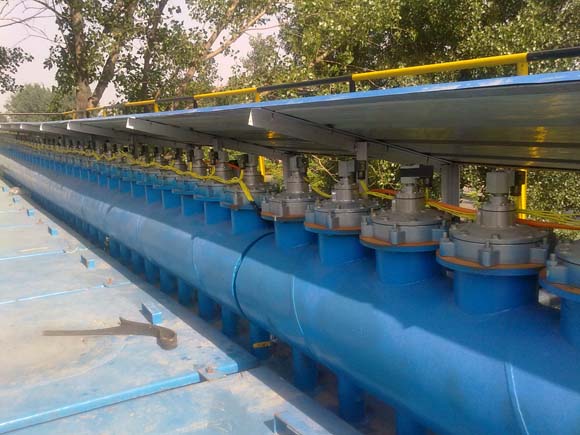 2)噴吹管。噴吹管是一根無(wú)縫耐壓管,上面按除塵濾袋數(shù)量開有若干噴吹孔口。噴吹管的技術(shù)要點(diǎn)在于噴吹管直徑、開孔數(shù)量、開孔大小及噴吹中心到濾袋口的距離要相互匹配。如果設(shè)計(jì)或選用不當(dāng)會(huì)影響清灰效果。為_清灰效果,這些參數(shù)可以通過(guò)試驗(yàn)確定,也可以通過(guò)實(shí)踐經(jīng)驗(yàn)選取。一般認(rèn)為噴吹孔口應(yīng)小于18個(gè),開孔為ф8-32mm,噴吹管距袋口200-400mm為宜。