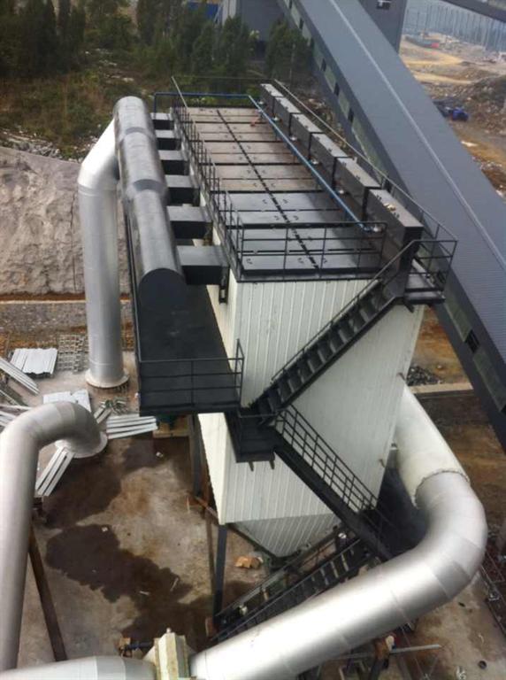 除塵器支撐結構是自撐式的,能把所有垂直和水平載荷轉移到柱子基礎上,_水平荷載都不會轉移到別的結構上,除塵器各層的平臺扶梯由賣方設計。