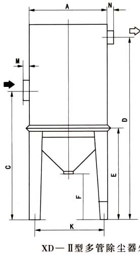 多管旋風除塵器是一種_的除塵器,除塵效率可達95%以上,除塵器本體阻力低于900Pa,用現有的鍋爐引風機_能_鍋爐正常運行。本除塵器負荷適應性好,在70%負荷時,除塵效率在94%以上。 XD—Ⅱ型
